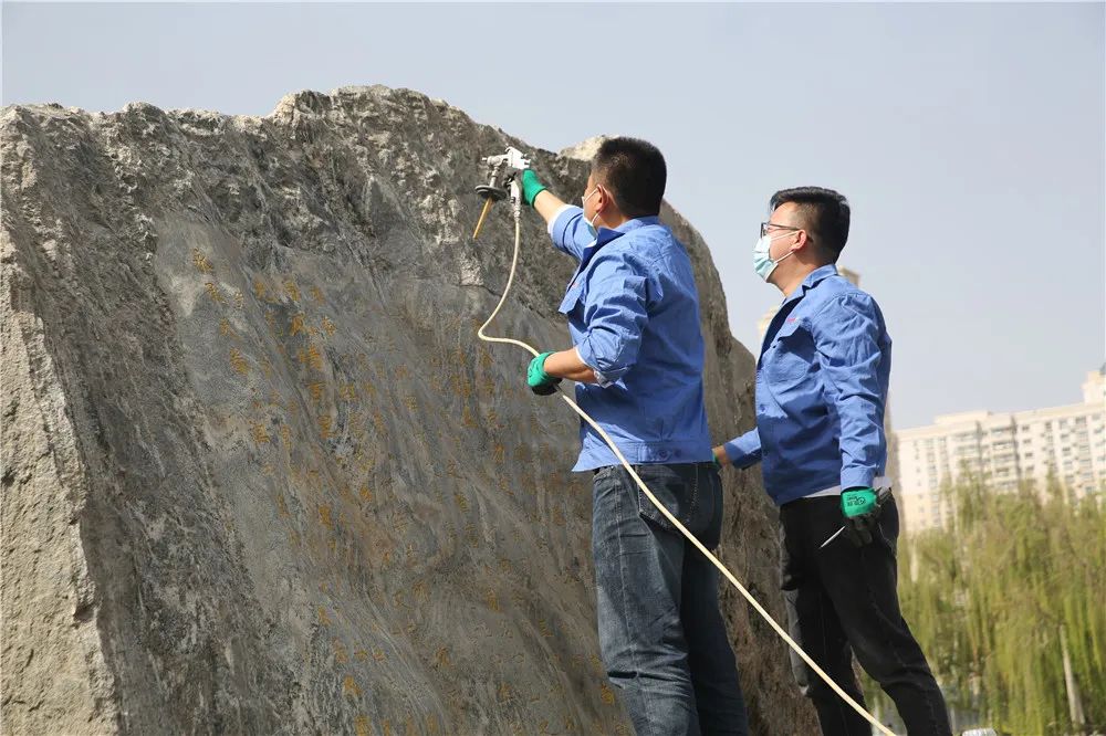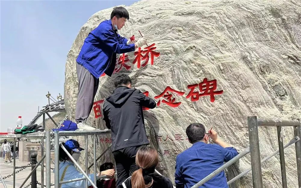经过6小时的努力,石碑刻字清晰鲜艳、醒目易识,纹路清晰、质感立显,整体和谐完美,更加彰显百年中山铁桥的历史和文化价值。