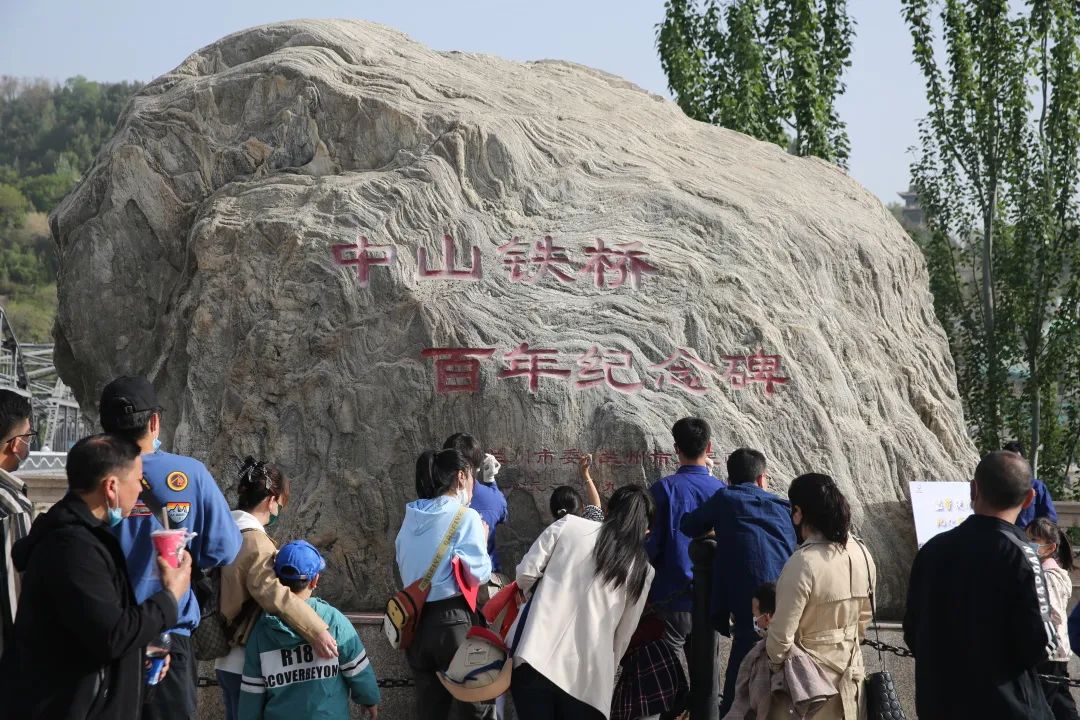 主题活动现场,黄河涛涛,铁桥横空,大家专注聆听专业导游关于中山桥的百年历史和沧桑巨变的讲解。