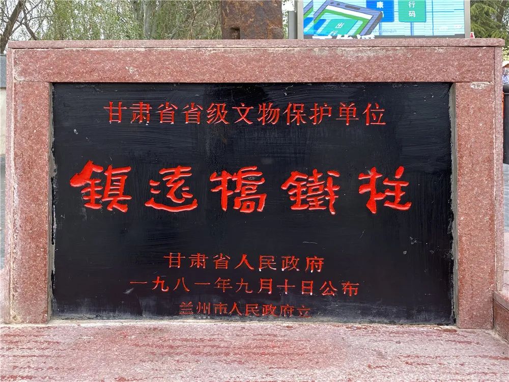 白塔耸峙,黄河东逝;古关静穆,楼映半空。一桥彩虹临波,百年流云飞渡。今逢盛世,毋忘尘忆,唯吾兰州,矢志创新,兹镌铭为念。