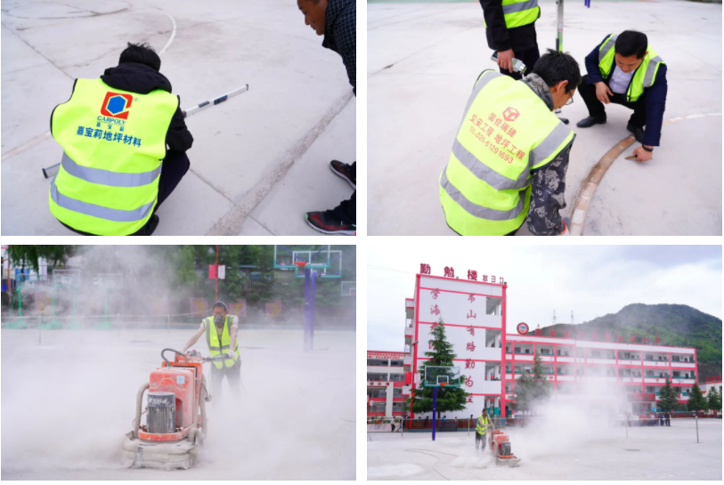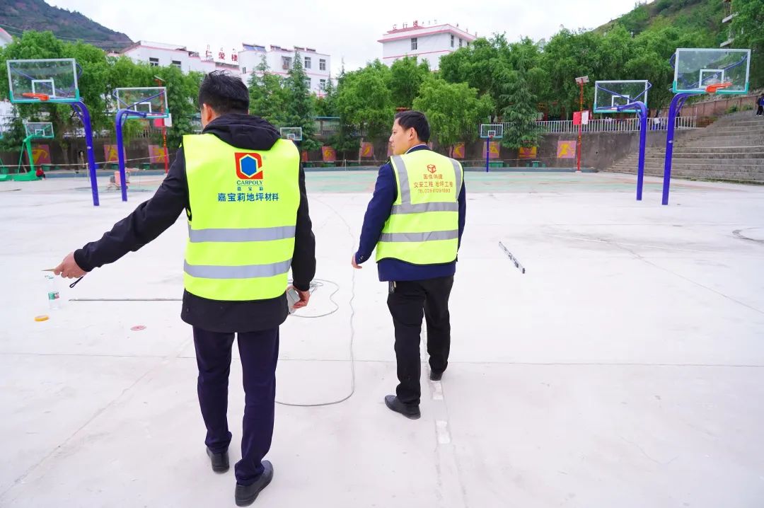 落实修复项目后,嘉宝莉携手四川国佳瑞捷建筑工程有限公司马上对场地进行考察,联合校方了解具体修复需求。三方对施工方案进行反复沟通,解决各种条件的约束与难点,包括当地天气、施工材料、施工单位、时间等问题,最终,制定出完善的施工方案。得益于四川国佳瑞捷建筑工程有限公司赞助的施工服务,项目进展迅速。