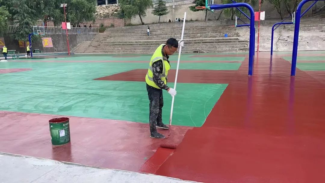 因巴普中学身处高海拔大山,长期受高强度紫外线照射,因此地坪产品需选用耐热、耐紫外线照射的产品。考虑到孩子的运动安全,球场表面需防滑、耐用、不易起皮。