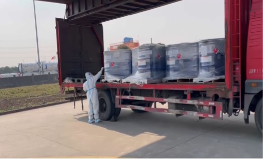 积极协调危化品车辆,不分昼夜探讨适用的物流方案。仓库部分岗位同事除了完成本职工作以外,还主动承担起进口货物消杀以及接送受管控司机的工作,确保原料正常供应。