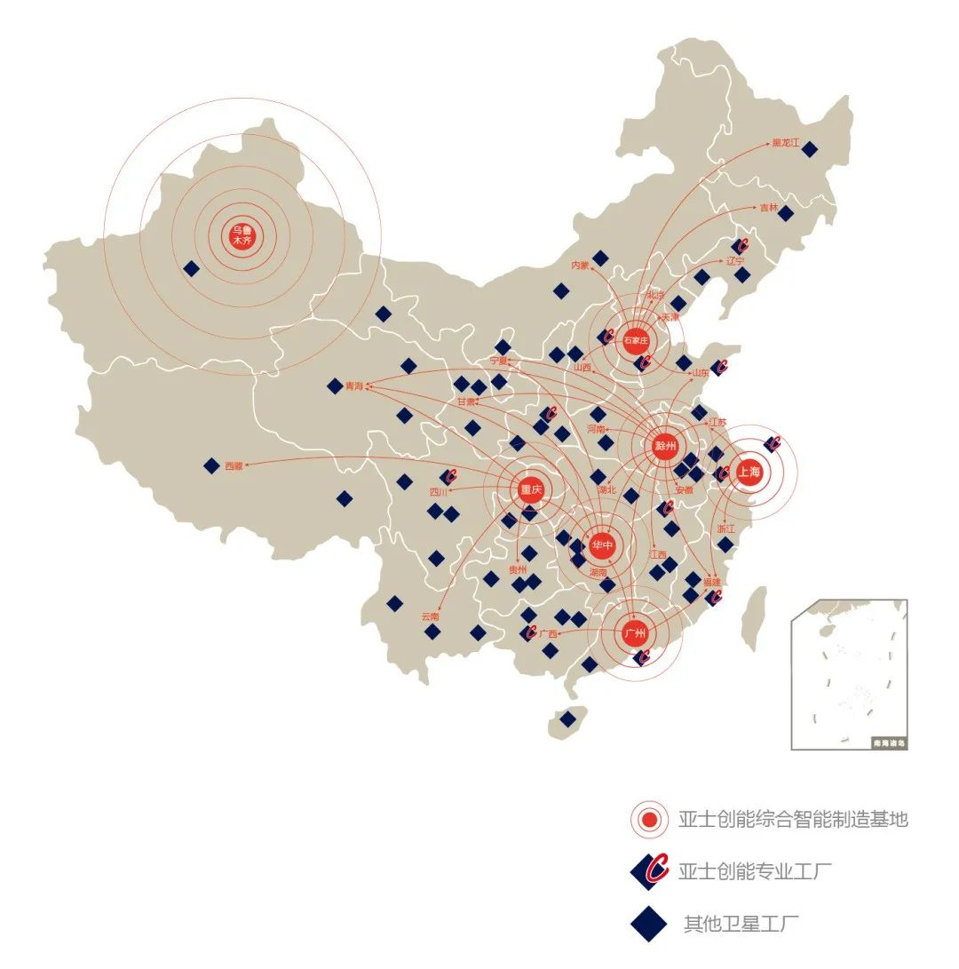 目前,亚士已在全国构建起“1+6+N”三个层级的产能供应保障体系。第一层级指1个上海总部、1个上海工厂加6大制造基地;第二层级指12个专业工厂;第三层级指亚士生态圈中的全国数十个其他卫星工厂。三个层级的全国产能布局,形成涂料、成品板500公里,保温板300公里,干粉砂浆200公里的就地就近立体化供应链。