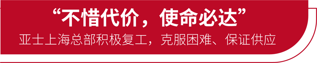 自3月31日上海封控以来,位于上海的亚士集团总部启动闭环管理,为保证上海“大脑”的正常运营,集团安排百余名各级干部与专业人士驻厂奋战,指挥全国80多个供应点工作,保障全国供应。百余骨干驻守前线,在做好本职工作的同时积极参与复产一线工作,为实现全国供应链稳定、上海有序复产而努力。