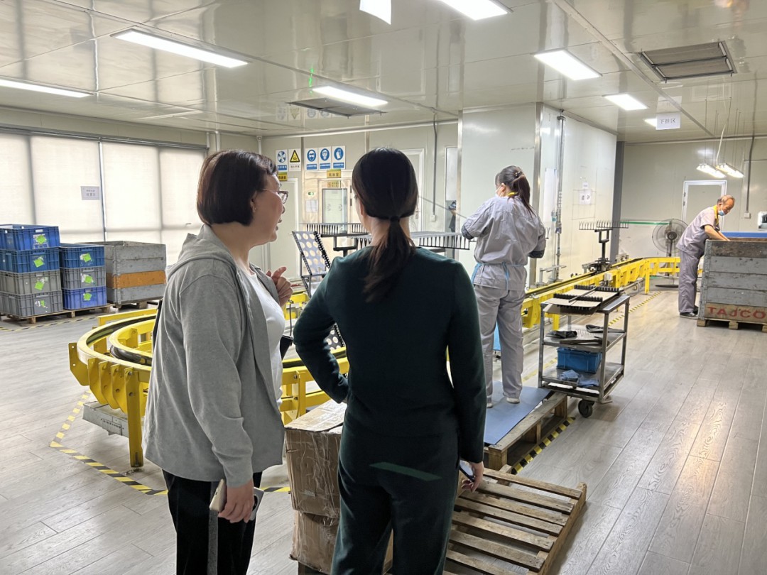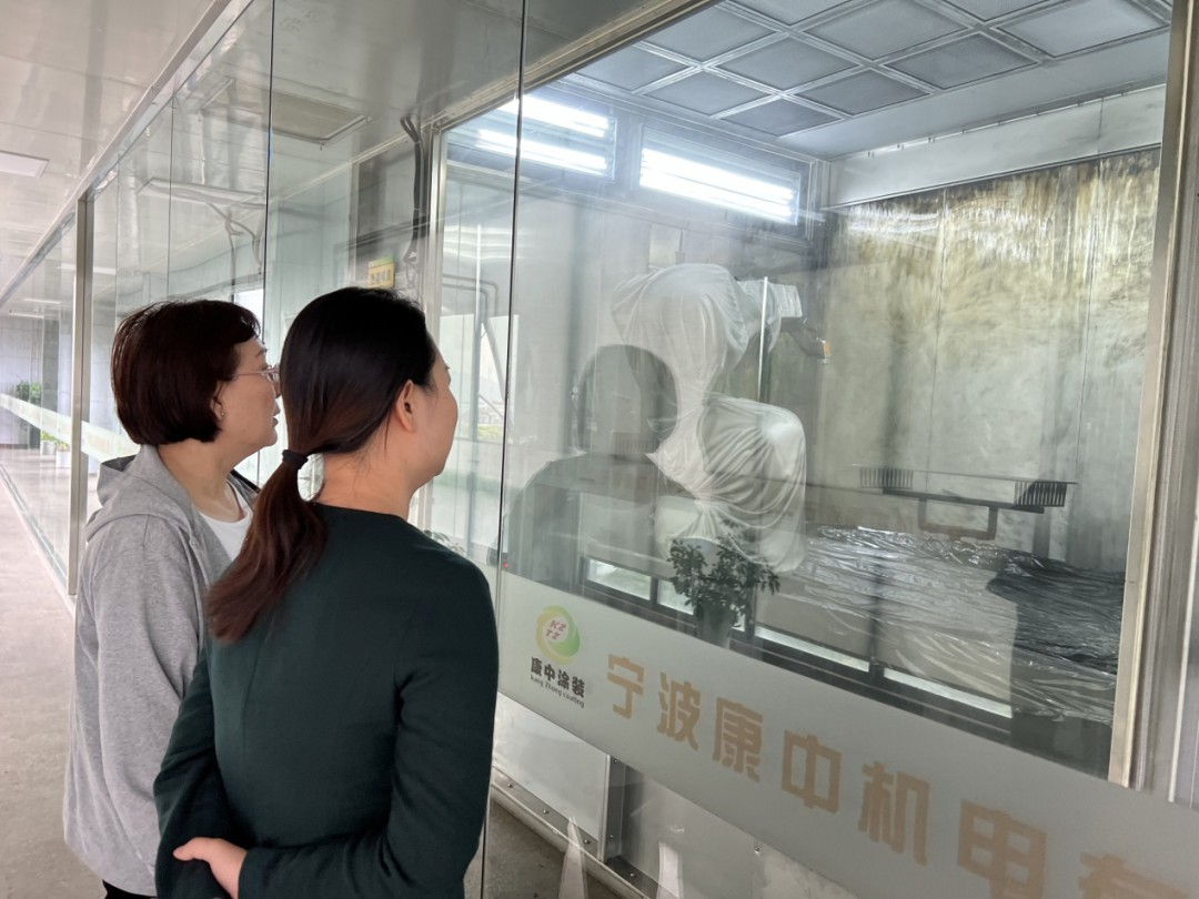 最后,在康中公司方水兰总经理的陪同下参观了智能机器人喷涂生产线、生产车间。