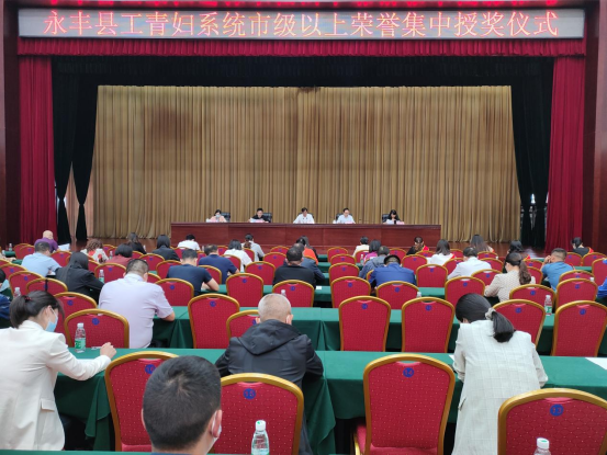 5月11日下午,永丰县举行全县工青妇系统市以上荣誉集中授奖仪式,对全县工青妇系统市以上荣誉先进集体、先进个人和示范家庭进行了集中授奖。