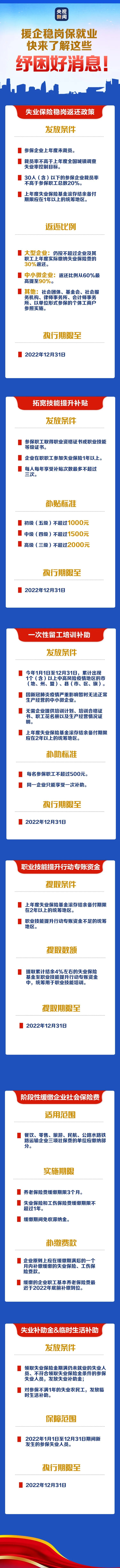 近日,人社部、国家税务总局等推出多条举措援企稳岗,聚焦帮扶受疫情冲击最大的困难行业及生产经营持续承压的中小微企业。哪些行业可缓缴企业社保费?补贴怎么领?一图了解↓