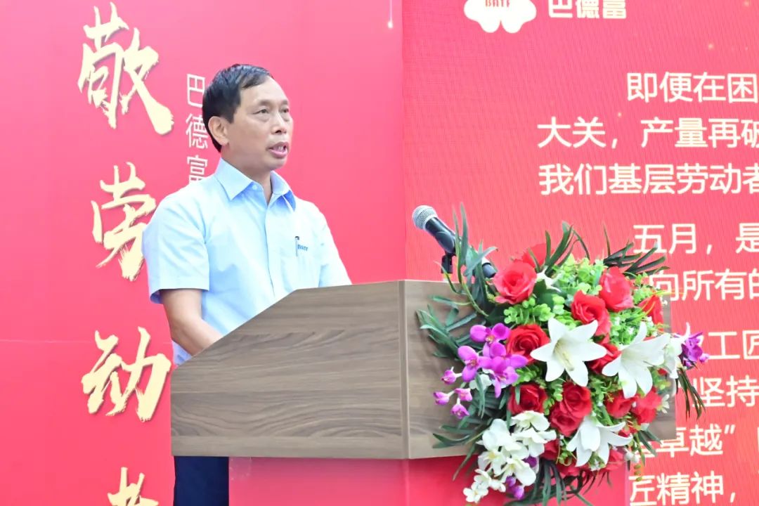 制造体系负责人戴石华发言时表示,制造体系应将本次表彰会作为⼯作的新起点,在今后的⼯作中,全员要全⾯深⼊地向优秀的工匠代表学习,爱岗敬业、吃苦在前、团结奋⽃、勇往直前,焕发精神⼒量,保持艰苦奋斗的本色,形成全员学优、争优、创优的氛围,汇聚强⼤的团队动⼒,全体人员同⼼同德、开拓创新,在平凡的岗位上铸就不平凡的业绩,在为客户创造价值、为社会做出贡献的过程中,⽤⾟勤的劳动共同谱写巴德富更加美好的壮丽篇章!