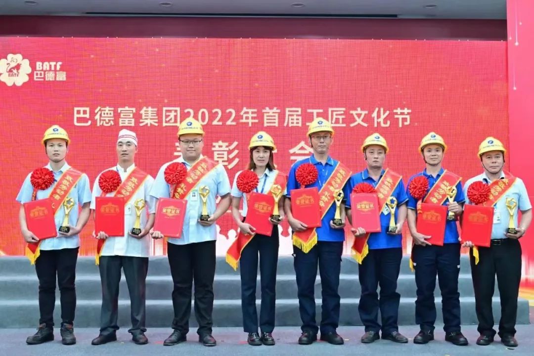 5月13日,巴德富集团举行了“致敬劳动者·礼赞奋斗者”首届工匠文化节顺德区域表彰活动。集团董事长梁千盛、监事会主席黎义忠、集团CHO李斌、制造体系副总裁戴石华、各体系各事业部领导及代表出席了本次活动,与顺德工厂及蓝德堡工厂一线员工近两百人齐聚一堂,共同见证了对制造体系顺德区域八位工匠人物的荣誉表彰。