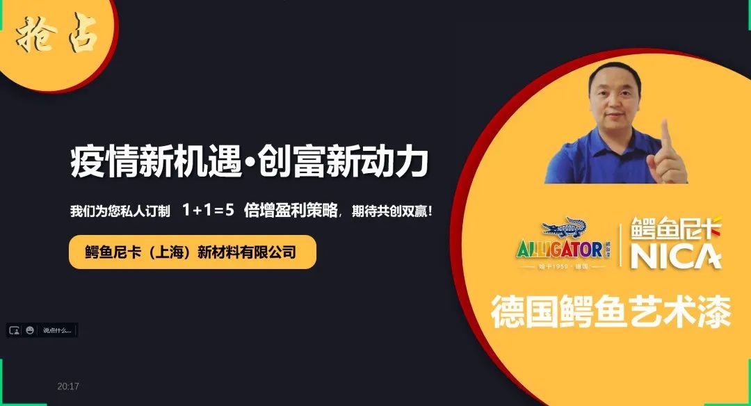 以此为起点,鳄鱼尼卡的渠道赋能行动密集展开——4月18日,以“德国鳄鱼:品质中国行,盛世63周年庆”为主题微信爆破活动落地;4月21日,以“疫情新机遇,创富新动力”为主题的德国鳄鱼漆云招商如期举行;4月28,对经销商群体的抖音推广进行系统培训……而整个5月也跟4月份一样,会举办一系列线上培训课程。”