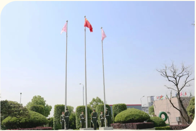 上午9时,升旗仪式开始。国旗班迈着铿锵有力的步伐护送国旗、司旗走向升旗台。五星红旗伴随着雄壮的国歌缓缓上升,在灿烂的阳光下舒展,润泰人深怀对祖国无限的热爱和崇高的敬意行注目礼。随后在气势磅礴的《润泰之歌》声中,润泰司旗冉冉升起,润泰人的责任感和自豪感油然而生。多年来,润泰人牢记“润泰新材 润泽未来”的使命,将公司的发展与祖国的命运结合起来,传承红色基因、秉承为国情怀,奋力谱写润泰的辉煌篇章。