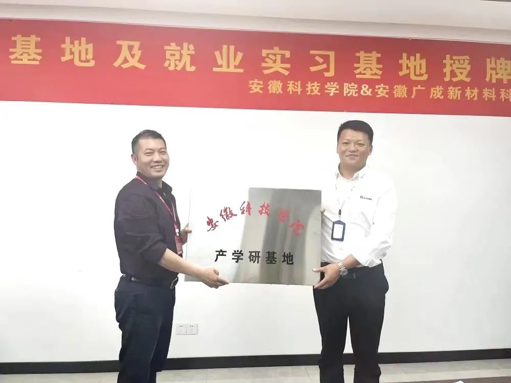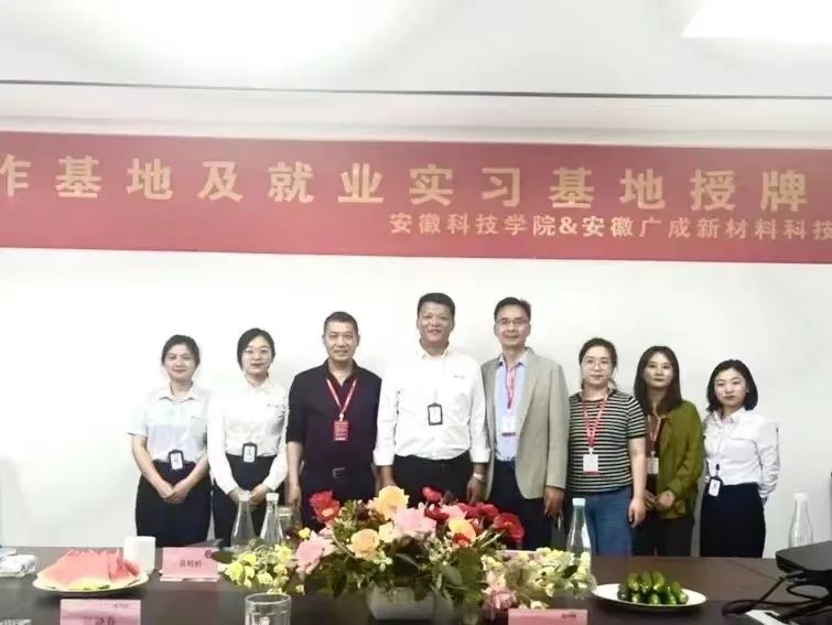 5月18日,安徽科技学院●化学与材料工程学院党委书记黄树桥,副院长李子荣、团委书记薛璐莎,辅导员李潮升一行莅临广成科技进行产学研基地及就业实习基地正式授牌,广成科技董事长陆晓春、副总经理范静静、黄其树热情接待。