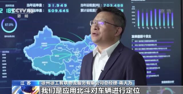 徐州徐工智联物流服务有限公司总经理 蒋大为:我们应用北斗对车辆进行定位,使用车联网以来,整个接驳效率提升了大概有20%左右。