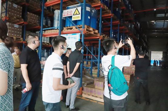 活动伊始,在制造中心制造一部部长程超、制造二部部长尹邦志的带领下,考察团走进工厂车间,参观了原材料仓库、生产车间、CNAS国家认可实验室、展厅等,全面了解集泰股份领跑行业的研发实力、自动化生产水平、检测技术能力以及重大项目案例的配套服务,充分感受集泰股份坚持“绿色化工”的路径及成果。