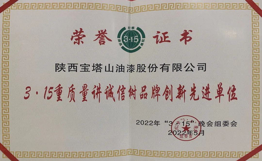 2022年5月25日,由陕西广播电视台西部电影频道、中国保护消费者基金会打假工作委员会、中国商品与质量周刊社、2022陕西3.15晚会组委会主办的“共促消费公平”3·15晚会暨服务经济高质量发展先进单位颁奖晚会在西安拉开帷幕,宝塔山漆受邀出席。