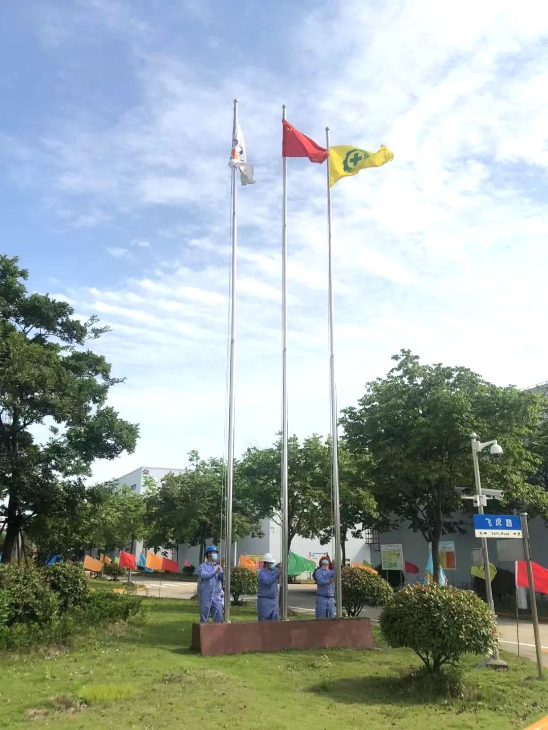 5月23日,华谊涂料迎来了7周年司庆。不同于以往,今年的华通路707号7岁生日只有70多位员工在场。一早,迎着和风,迈着整齐的步伐,全体驻厂员工列队入场,举行庄严的升旗仪式。简单地整理队形后,总经理李小林发表司庆致辞,激励全体华涂人持续发扬“飞虎就是超越”的公司精神,超越自我,超越过去,相信疫情即将过去,全体员工相聚华涂的日子也将指日可待。随后,全体在场员工面向国旗,升国旗、唱国歌。礼毕,大家齐声高喊“上海华谊涂料七周年庆生日快乐!” “华涂加油!”“上海加油!”,喊出了华涂人内心最真挚的祝福。