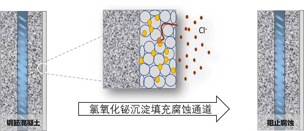 缓释型的氯离子结合剂,堵塞腐蚀通道