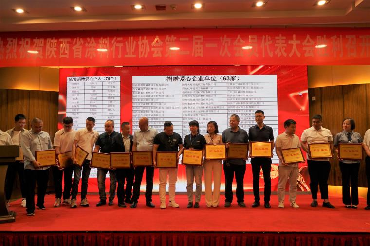 会上,陕西省涂料行业协会总结了第一届理事会工作开展情况,以及2021-2022年参与西安市抗击新冠疫情捐赠活动,并表彰优秀捐款单位和捐款个人。