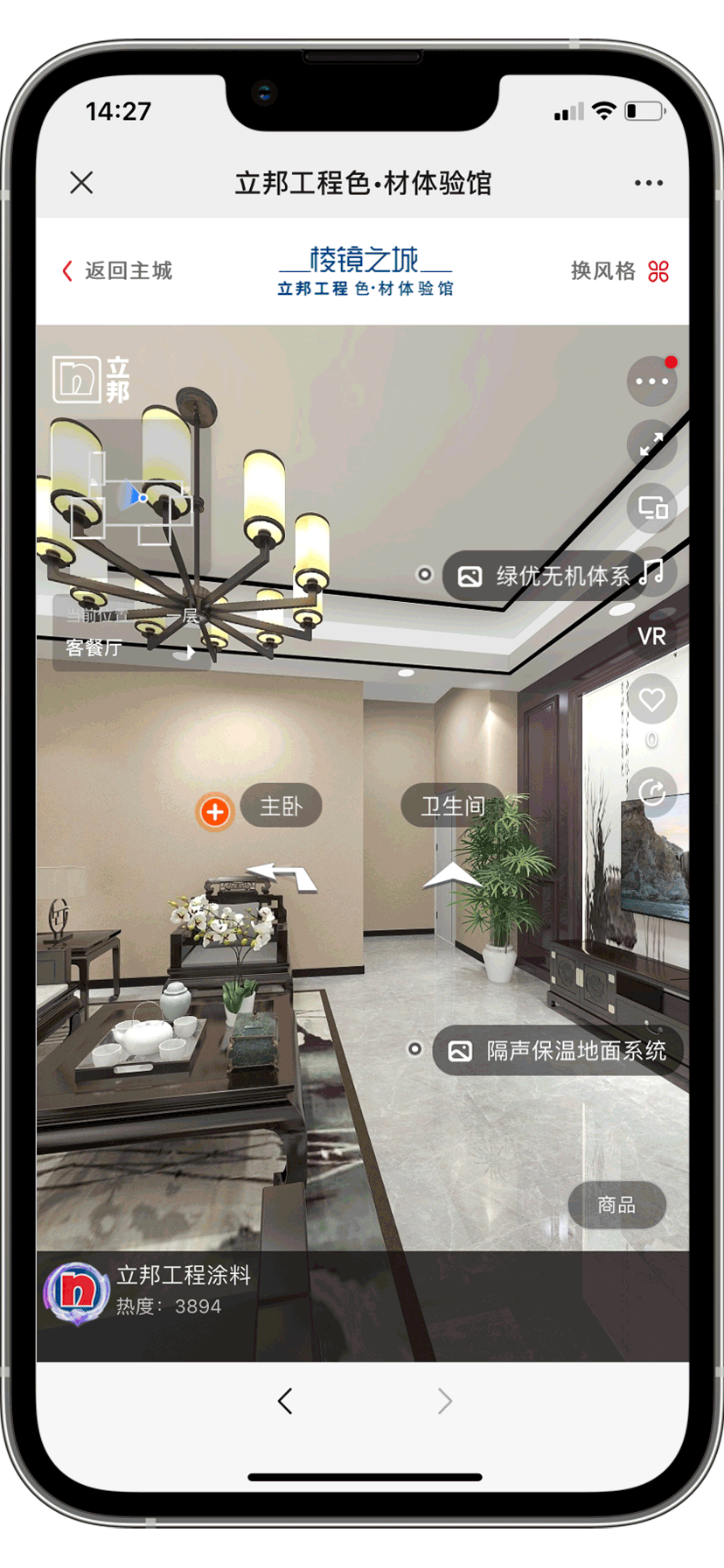 在建筑场景逐渐细分的时代,不同应用领域在空间功能规划上相应产生了不同的需求,对色彩与材料的匹配性也提出了更高的要求。过往客户对场景解决方案的色·材设计效果基本依靠图纸进行延展想象,而现在,依托VR技术的创新,立邦提出更加“身临其境”的建筑色·材沉浸式体验,结合多元场景解决方案,升级体验感受,迈出涂装行业“元宇宙”探索的坚定步伐。