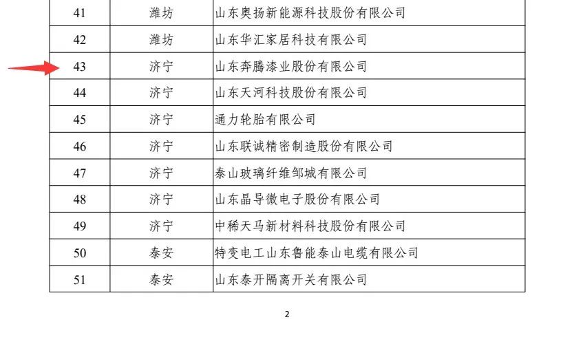 近日,由山东省工业和信息化厅组织开展的2022年山东省技术创新示范企业认定名单正式公布,山东奔腾漆业股份有限公司成功入选!