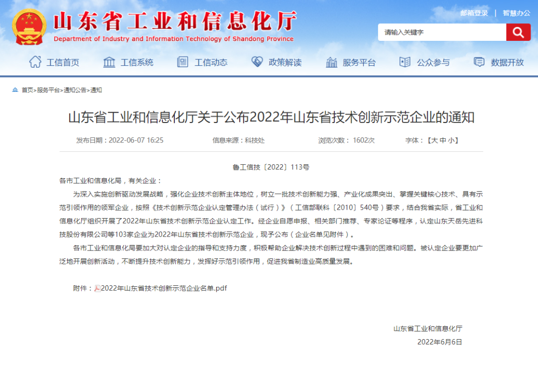 该评选由山东省工信厅组织发起,旨在筛选出一批在工业主要产业中技术创新能力强、创新业绩显著、产业化成果突出、掌握核心关键技术、具有示范引领和导向作用的企业,助推山东省工业产业的高质量发展。