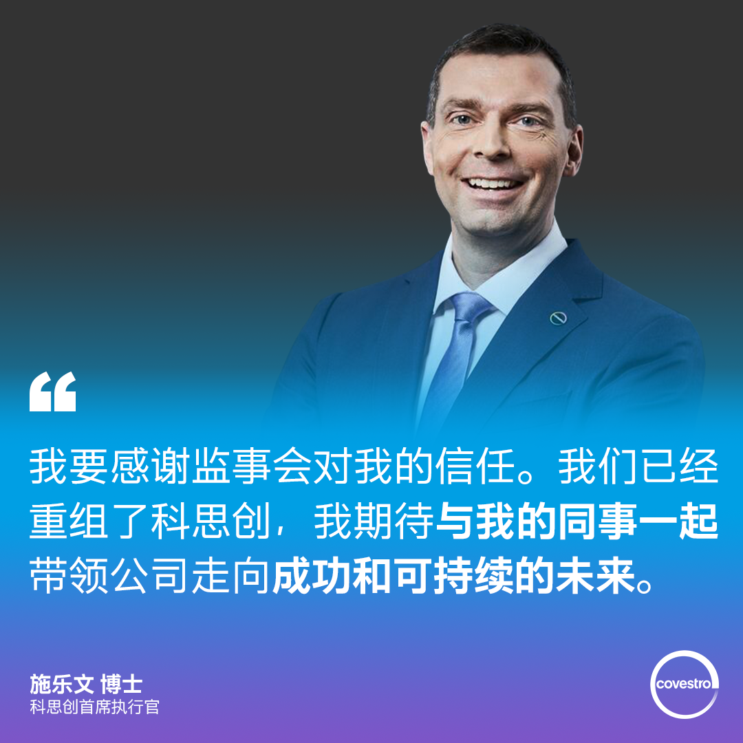 科思创监事会主席Richard Pott博士表示:“在迄今为止的CEO任期内,施乐文为科思创带来了出色的领导力,制定了重要的战略方向并推动了集团的可持续发展。我们期待继续我们的成功合作。通过提前延长他的任期,我们想强调对施乐文先生继续带领公司实现全面循环的转型的信心。”