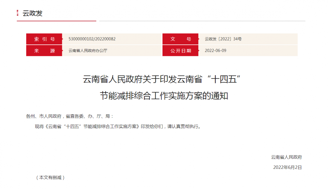 日前,云南省政府印发的《云南省“十四五”节能减排综合工作实施方案》提出,到2025年,全省单位地区生产总值能源消耗比2020年下降13%以上,能源消费总量得到合理控制;全省化学需氧量、氨氮、氮氧化物、挥发性有机物排放总量等主要污染物重点工程减排量分别为5.16万吨、0.33万吨、1.28万吨、0.83万吨;节能减排政策机制更加健全,重点行业能源利用效率和主要污染物排放控制确保如期完成“十四五”节能减排约束性目标任务。