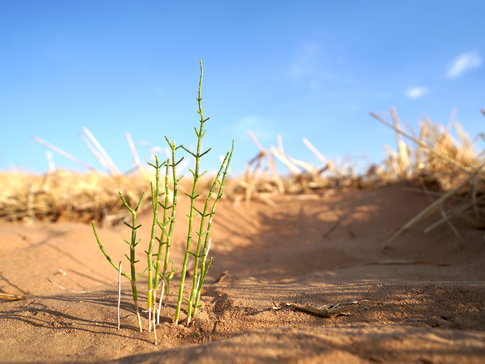 作为防治地球荒漠化和干旱重要植物,梭梭树具有极强的抗逆性,极耐旱耐寒,能够适应干旱生境。它庞大的根系,垂直根可达9米以上,水平根更是可以分布到10米以外,可以有效防止沙漠中的水土流失,防风固沙。
