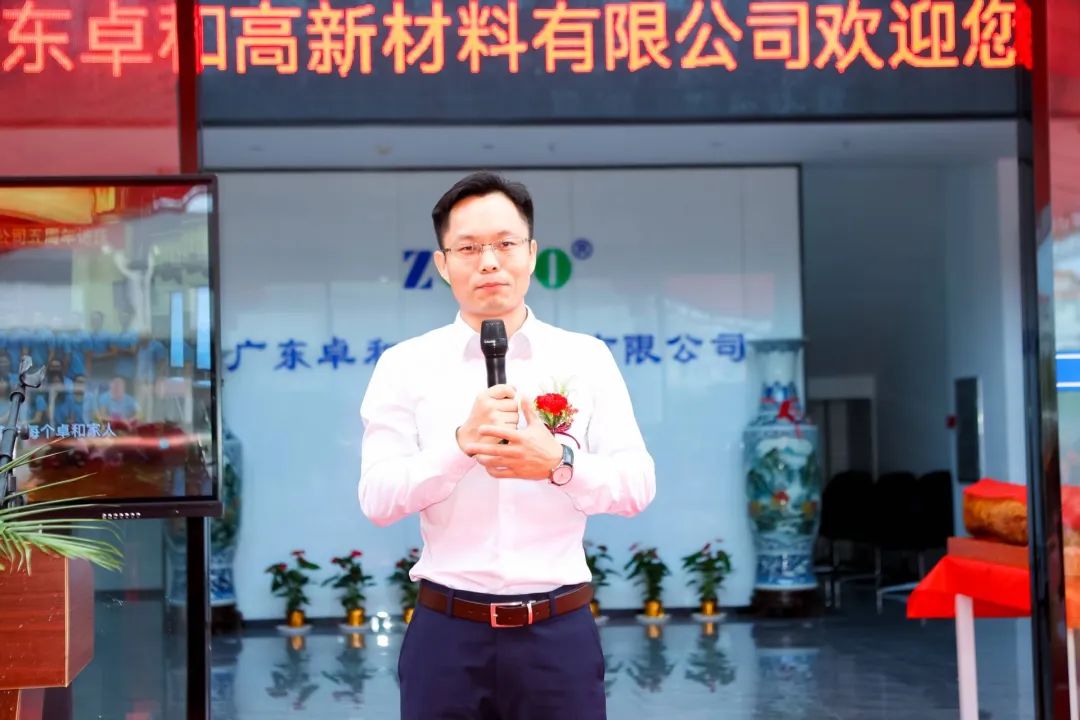 活动伊始,卓和公司总经理邹长源进行热情洋溢的开场致辞:“卓和公司成立于2012年,主要从事高分子合成材料的研发、生产和销售,从一个小厂起步,发展成为今天包含了珠海市卓和化工科技有限公司、广东卓和高新材料有限公司、卓和高新材料(东莞)有限公司、昆山卓和化工有限公司的一个具有现代化管理的企业。”