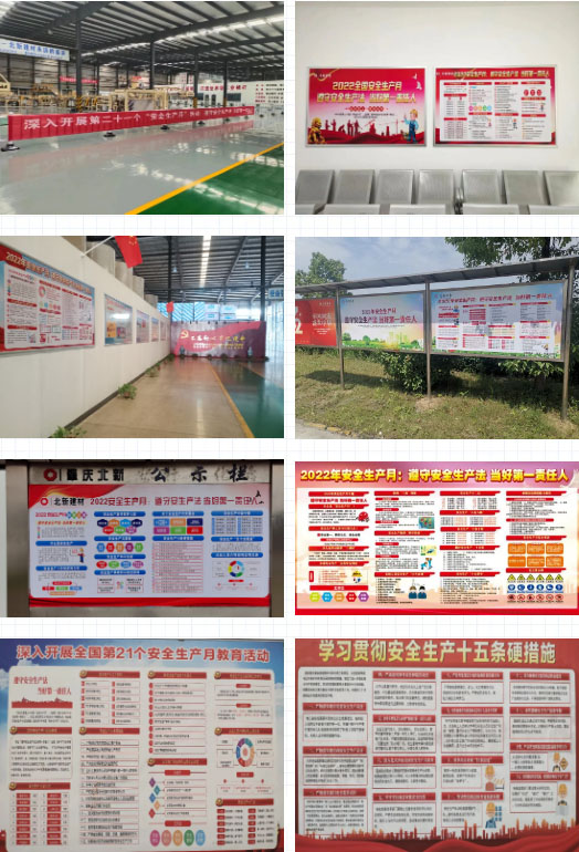 安全生产月期间,各企业制作了内容丰富、设计精良的活动看板,积极宣贯 “安全生产月”主题及十五条安全生产措施。部分企业走出工厂、走出北新,与属地社区联合开展安全宣传咨询日活动,通过主题展览、现场咨询、派发安全宣传资料等方式开展安全宣传咨询。
