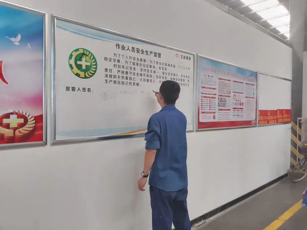 北新建材各企业积极贯彻“安全生产月”精神,组织开展“安全生产月”宣誓、签名活动,强化员工安全生产意识,将安全生产责任落实到位。