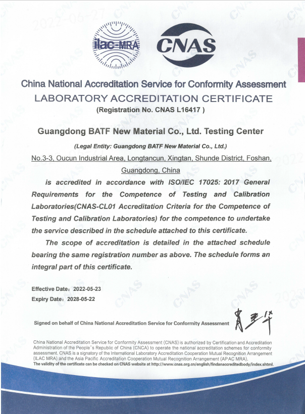 2、产品CNAS认证,必须由具备CNAS认证资质的实验室承接相关检测业务,并出具产品检测报告。巴德富获得CNAS认证,意味着巴德富出具的产品检测报告具有权威性、独立性、公正性、技术性、规范性、统一性、国际性等特征。