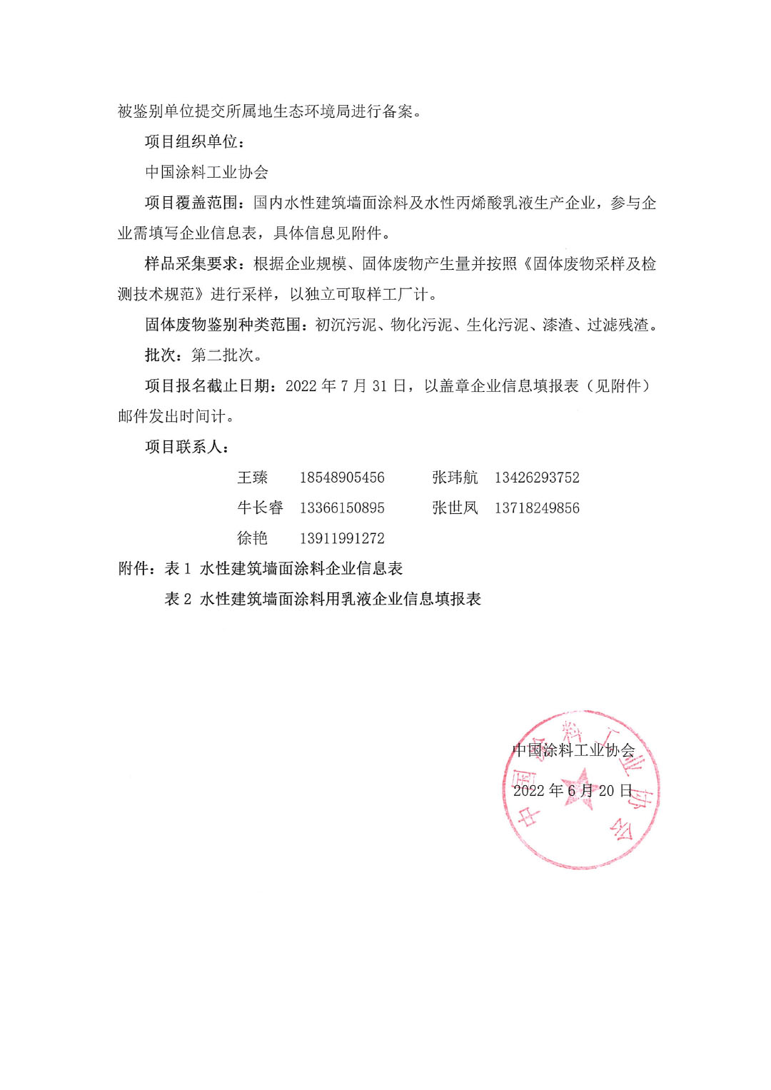 项目覆盖范围:国内水性建筑墙面涂料及水性丙烯酸乳液生产企业,参与企业需填写企业信息表,具体信息见附件。