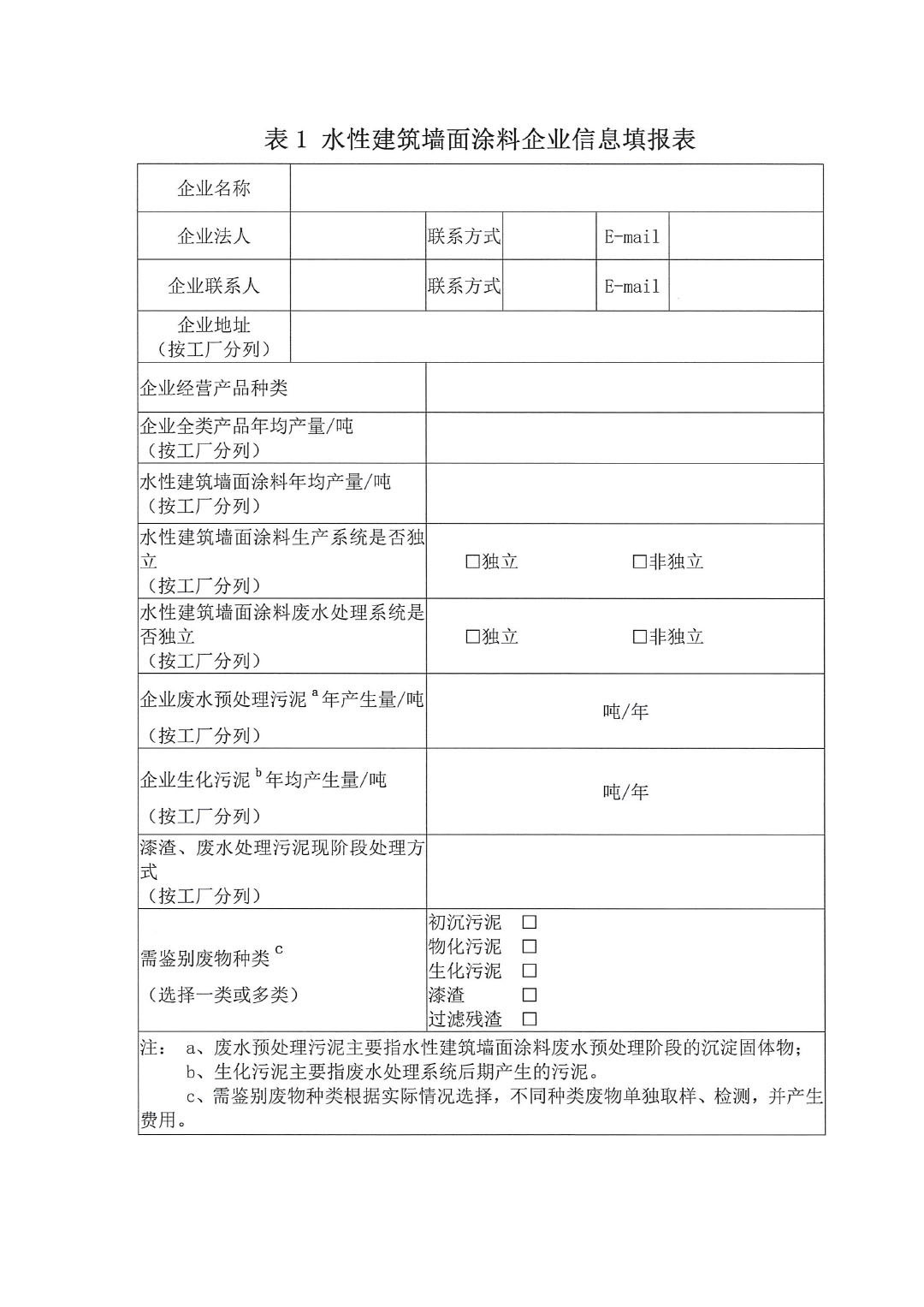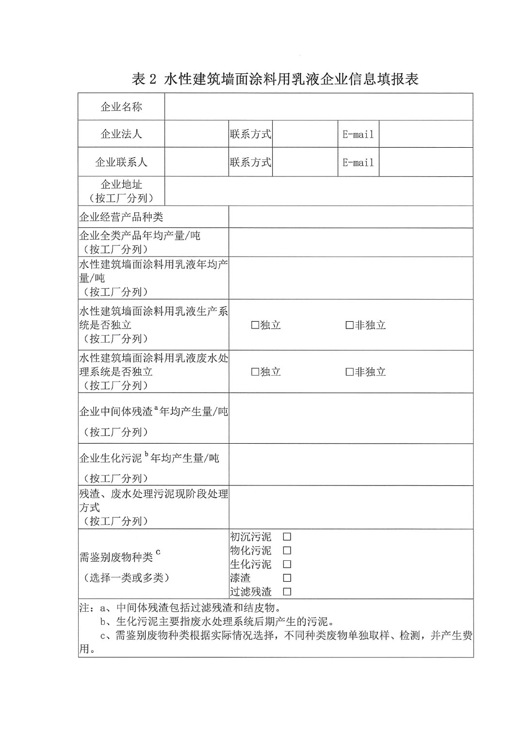 附件:表1 水性建筑墙面涂料企业信息表 表2 水性建筑墙面涂料用乳液企业信息填报表