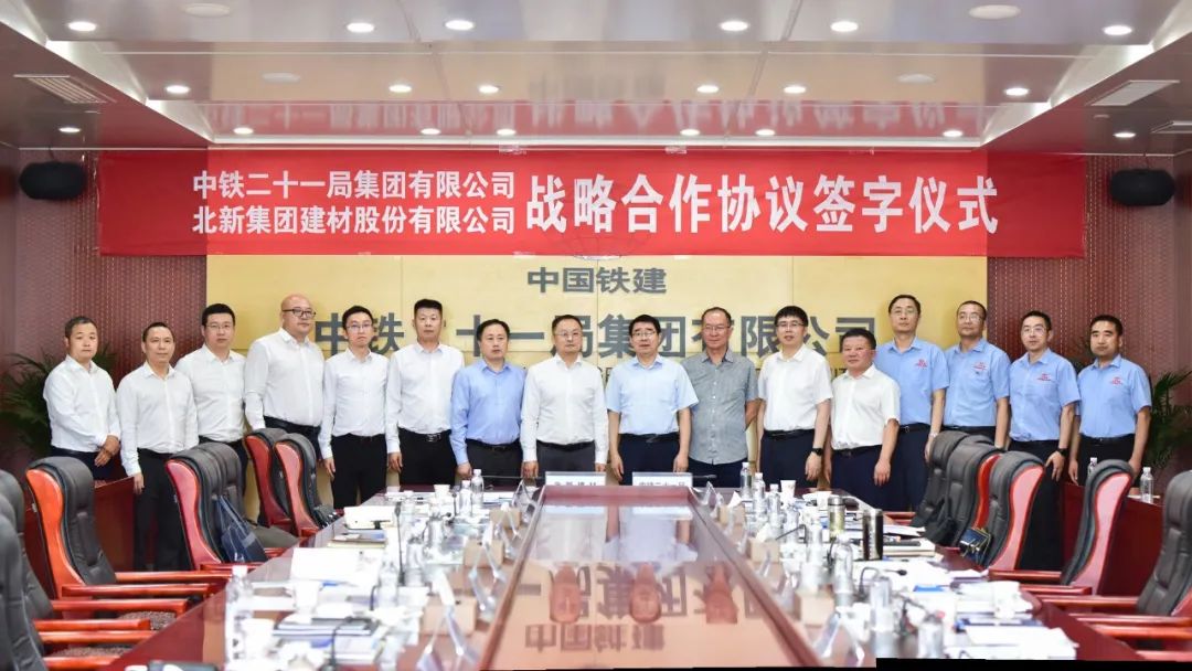 中铁二十一局集团、西部铁建工程材料科技有限公司和北新建材有关部门、单位负责同志参加签约仪式和座谈。中铁二十一局集团有限公司隶属国务院国资委下属的中国铁建股份有限公司,是集工程建设、科技研发、房地产开发、矿产资源开发及商贸经营等于一体的国有特大型建筑企业集团。拥有施工机械、检测等设备4137余台(套),年度施工能力400亿元以上。先后完成了青藏铁路等60多项国家铁路干线工程建设、13000多条公里电气化铁路工程建设,都汶高速等40多条高等级公路建设。曾先后荣获中国建筑工程鲁班奖、詹天佑奖、广厦奖、国家优质工程金(银)奖、全国百项精品工程奖30多项;荣获省(部)级优质工程奖60多项;荣获国家、省部级科技进步奖30多项,其中国家科技进步特等奖1项;国家和省部级工法40多项、专利130多项,其中发明专利30多项,创中国建筑施工企业新纪录6项。