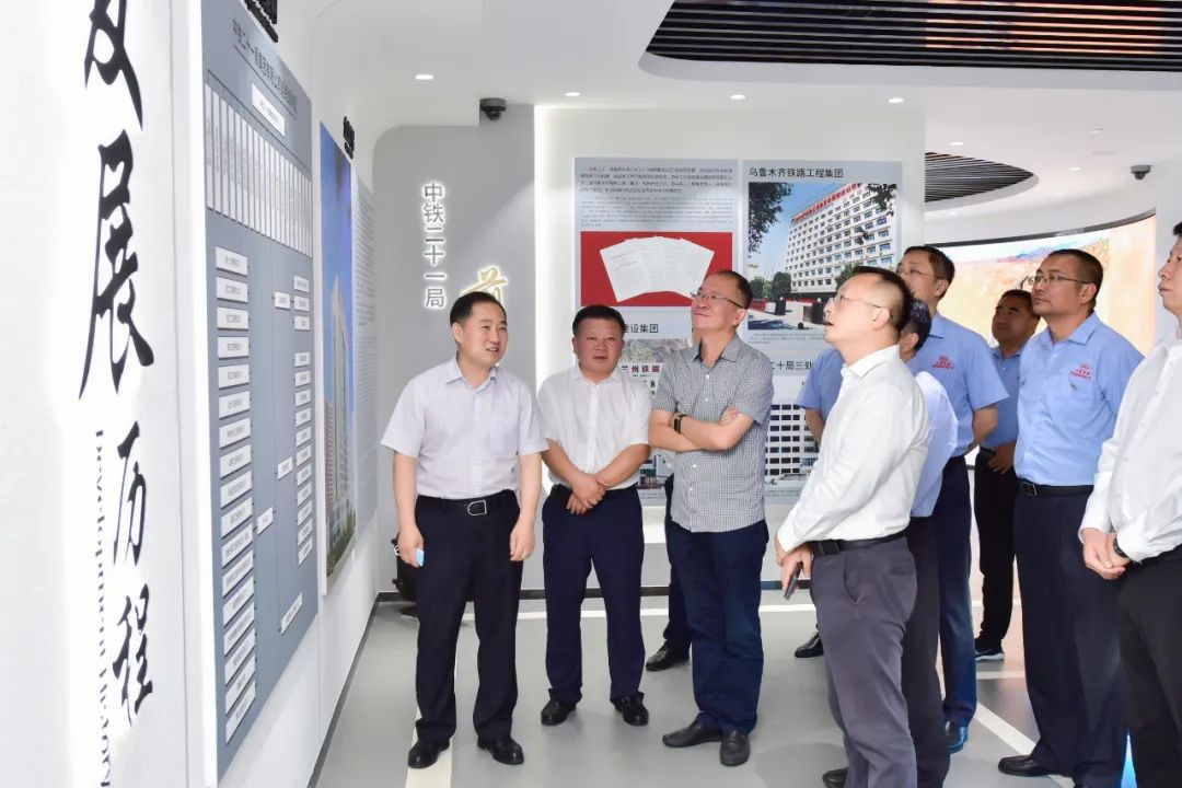 座谈前,管理一行先后参观了西部铁建工程材料科技有限公司生产车间和中铁二十一局集团展览馆。