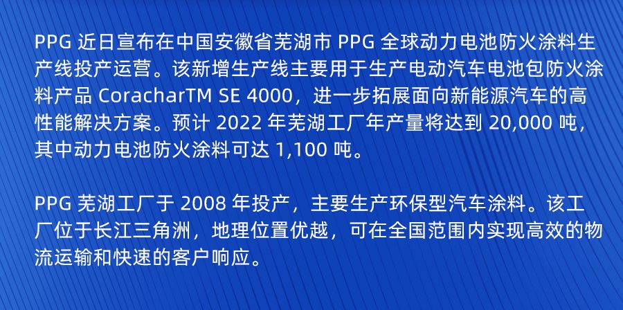 收购|PPG芜湖工厂全球动力电池防火涂料生产线投产运营