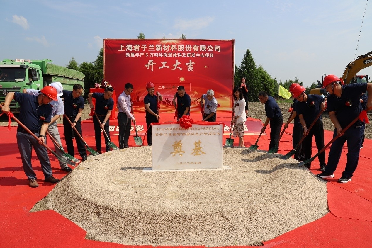 7月27日上午,上海君子兰新材料股份有限公司新建环保涂料研发生产基地开工奠基仪式在上海市青浦区成功举行。君子兰董事长马慧峰、青浦工业园区党委副书记、总经理曹林云、党委委员、副总经理沈豪、君子兰副总经理兼营销中心总监王海军等集团高层领导、广东政和工程有限公司总经理王芳、上海青园建设集团有限公司总经理费峰等有关领导共同见证奠基典礼这一重要时刻。