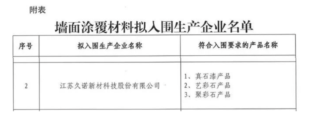 久诺及旗下产品入围雄安新区建设涂覆材料公示