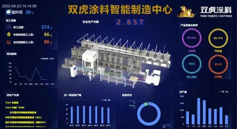 本系统不仅很好地助力了公司经营质量提升,同时在湖北省涂料行业也是一个样板工程,双虎涂料将以此为样板,持续复制本生产线来升级其他生产车间,全面提升双虎涂料的智能化制造水平,持续助力企业的高质量发展。