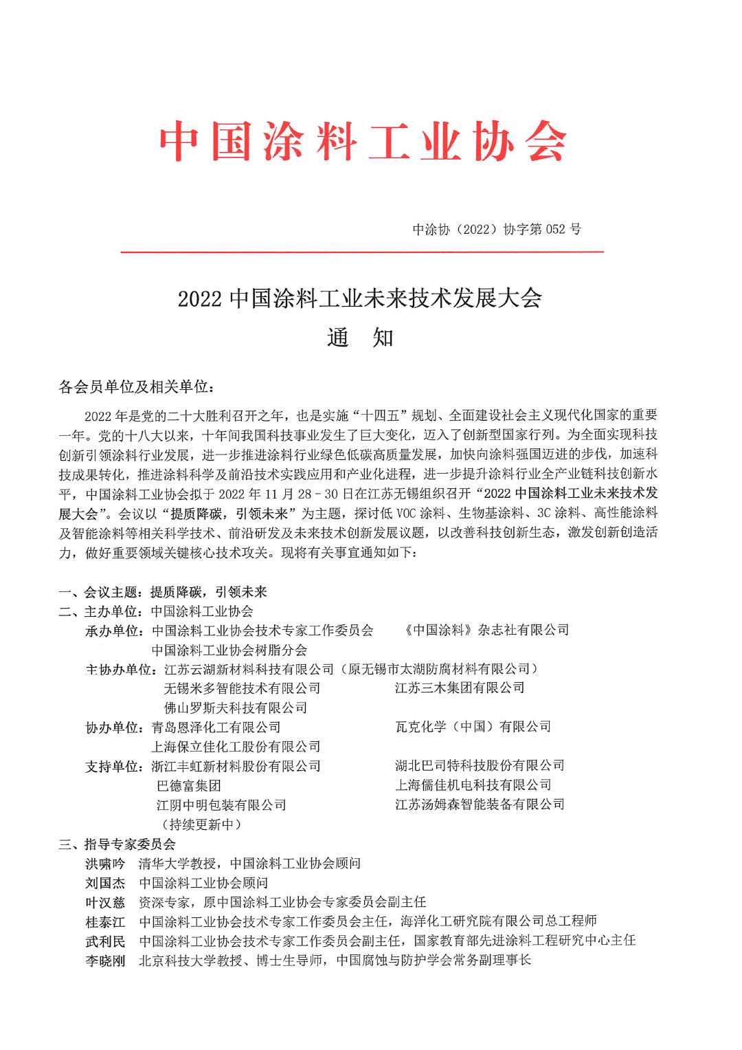 3、2022年11月14日发布:2022中国涂料工业未来技术发展大会通知.pdf