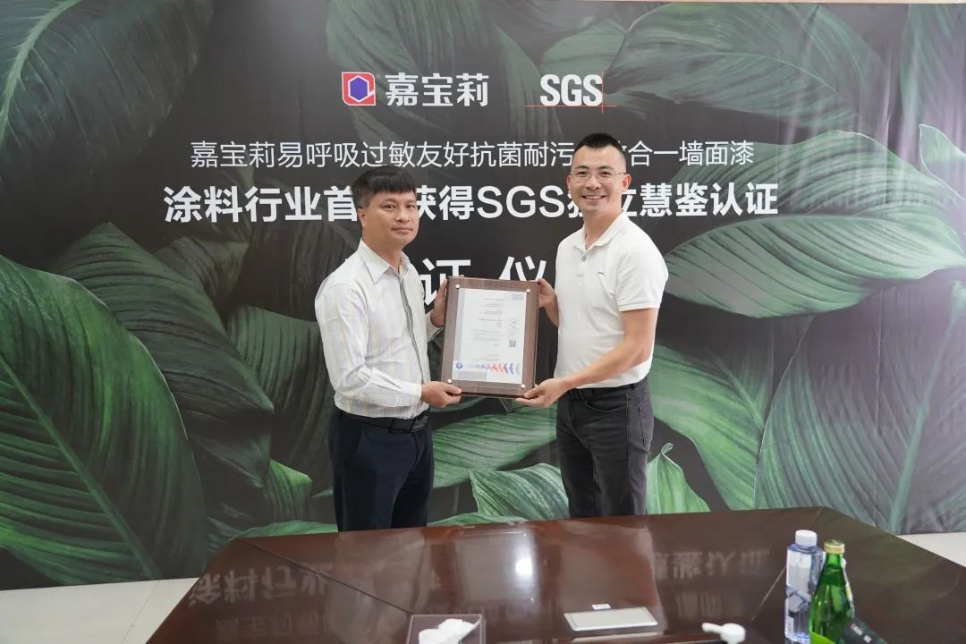 近日,国际公认的检验、测试和认证机构SGS携手嘉宝莉,成功举办了“SGS授予嘉宝莉易呼吸墙面漆涂料行业首张独立慧鉴认证”颁证仪式。此认证为SGS在中国发出的涂料行业首张独立慧鉴认证。