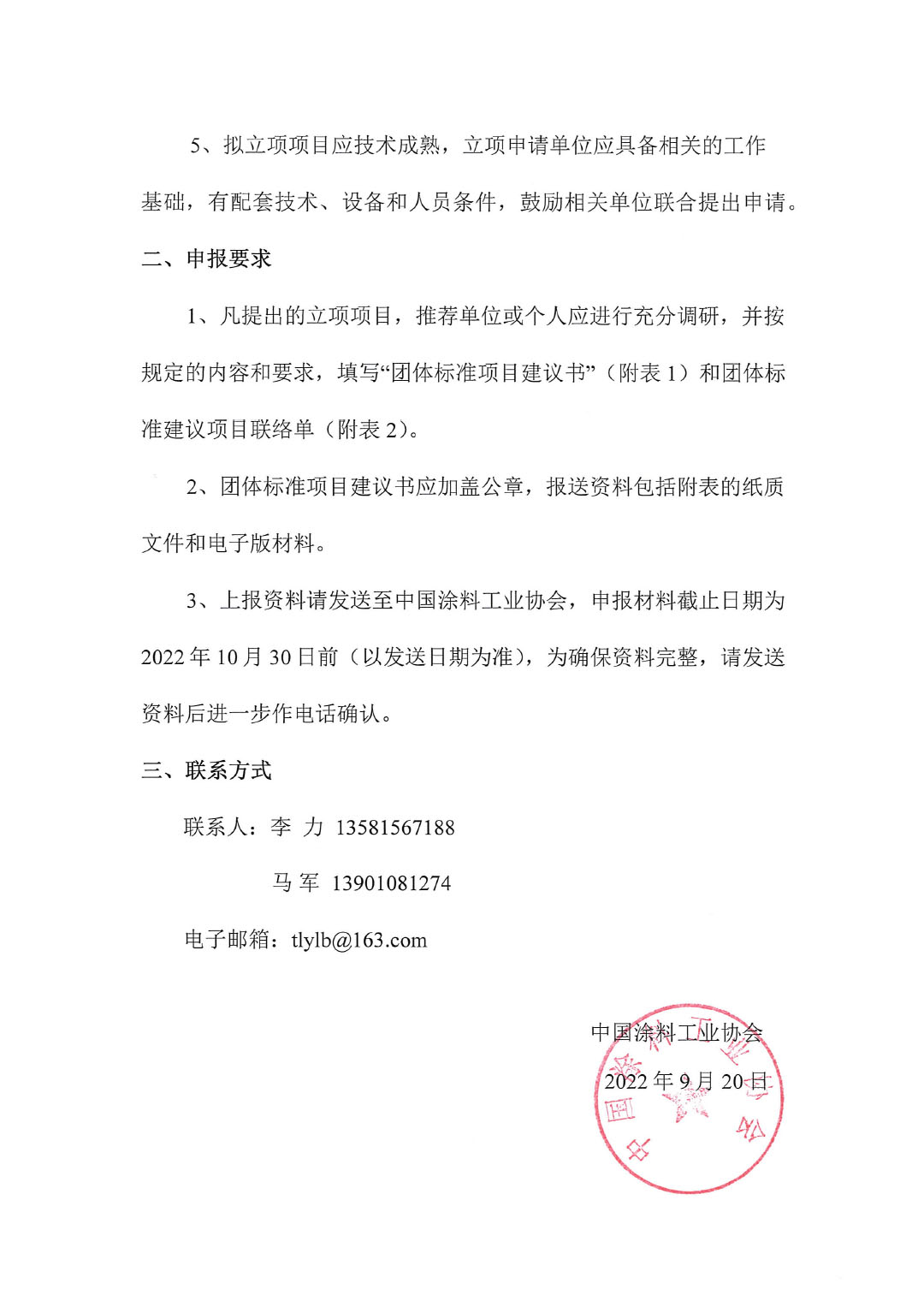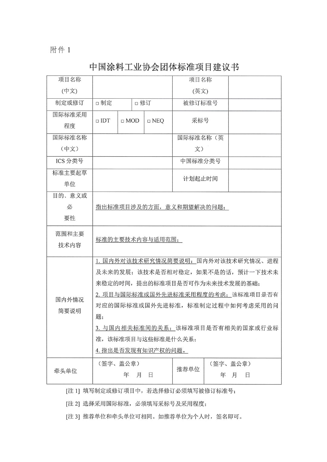 1、凡提出的立项项目,推荐单位或个人应进行充分调研,并按规定的内容和要求,填写“团体标准项目建议书”(附表1)和团体标准建议项目联络单(附表2)。