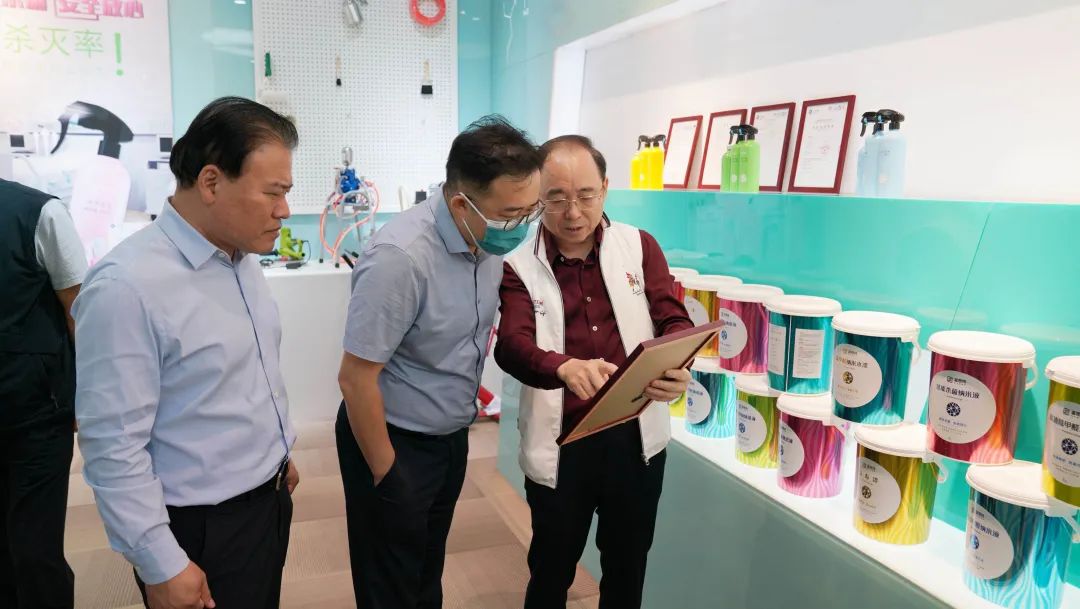 在纳米新材料产品展区,郭总着重介绍了益寿漆这款产品,他表示益寿漆作为内装涂料产品,能够释放负氧离子,消除异味,净化室内空气,且兼具优异的洗擦性、防霉性、抗菌性。
