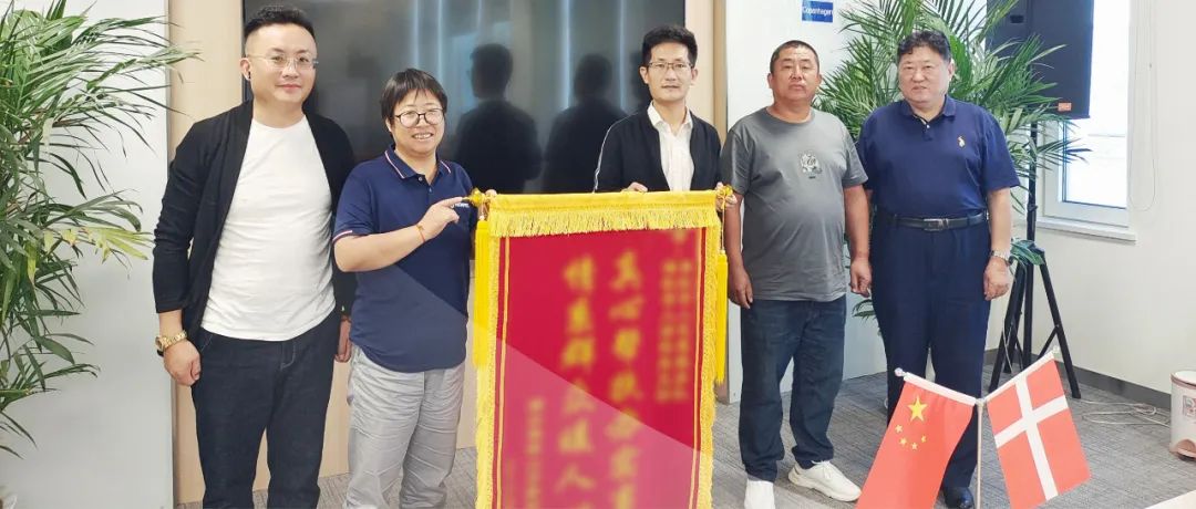 近日,烟台市黄渤海新区潮水镇峰山冷家村第一驻村书记桑君恒及村党支部书记、村委会主任姜善舫将一面印有:“真心帮扶办实事 情系群众暖人心”的锦旗送到了海虹老人涂料(烟台)有限公司,表达了村两委及全体村民对海虹老人的感谢之情。