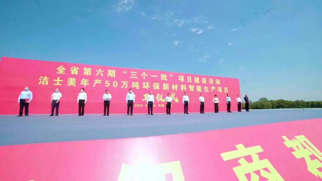 9月28日上午,河南省第六期“三个一批”项目建设活动集中开工仪式在洁士美环保新材料智能生产项目现场举行。