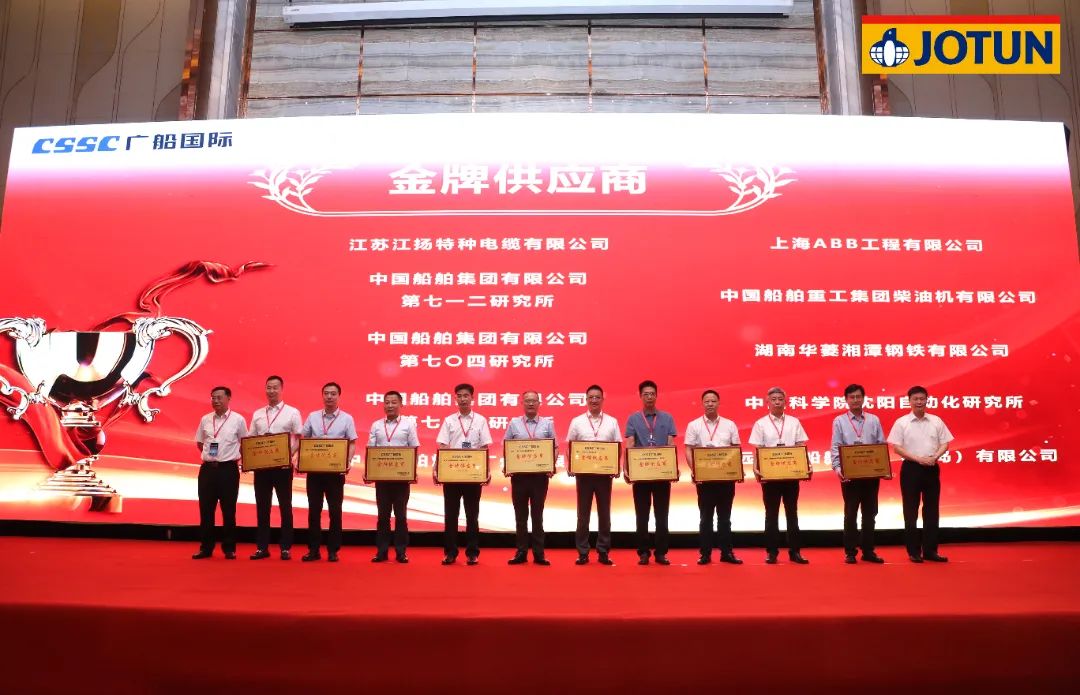 中远佐敦跟广船国际有多年合作历史,凭借优异而且稳定的产品质量,良好的产品配送以及技术服务,业绩和市场份额不断增长,成为目前广船国际主要的油漆供应商。此次获颁“金牌供应商”,是广船国际在其1176家合格供应商中评选出来的10家,中远佐敦也是唯一一家获奖的涂料供应商,这是继2018年中远佐敦获得该公司“优秀供应商”后再次获得广船国际的肯定。