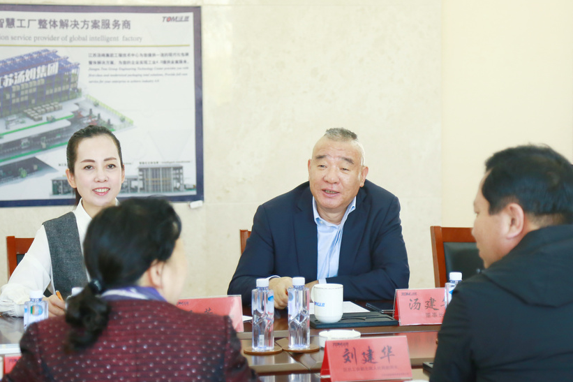 江苏汤姆集团董事长汤建华、总经理王芳、财务总监兼工会主席吴芳、新产品研发总监兼汤姆教育培训中心校长刘路热情接待了各位领导并出席会议。