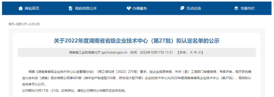日前, 省工业和信息化厅研究确定420家企业的技术中心为2022年度湖南省省级企业技术中心,认定名单现已完成公示,湖南新威凌新材料有限公司入选。
