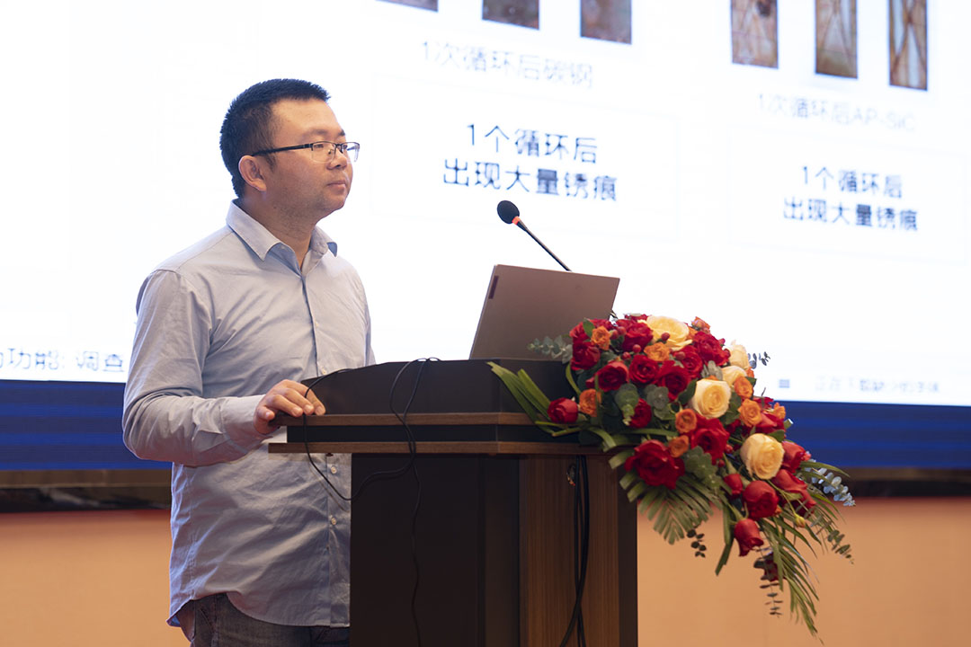 中国科学院宁波材料技术与工程研究所刘栓博士,在“海洋耐高温涂层研制及防护机理研究”议题中,首先从环氧腐蚀环境与金属腐蚀速度方面做了详细讲解,其次,通过酚醛环氧耐高温涂料与磷酸盐耐高温涂层两种涂层技术及防腐、耐高温机理、效果、工程案例等方面与现场观众做全面分享。